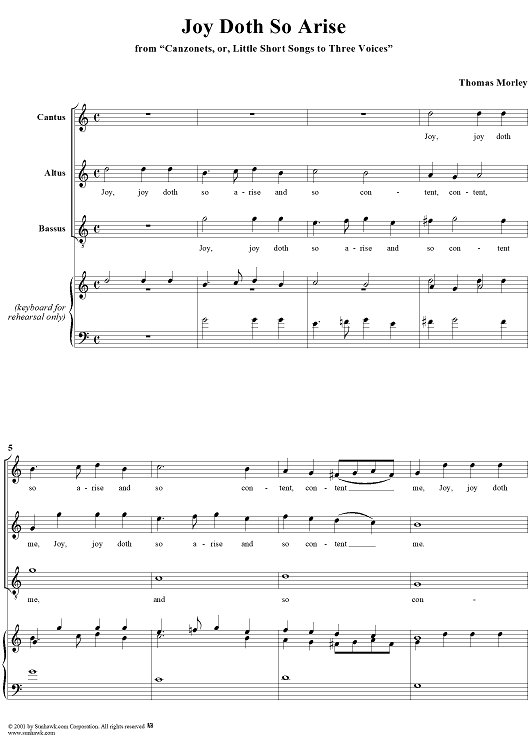Digital Sheet Music for Joy Doth So Arise by Thomas Morley scored for Three-part Mixed Chorus; id:260178