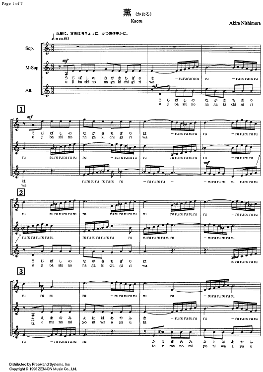 Digital Sheet Music for Kaoru by , Akira Nishimura scored for Female Chorus; id:337929