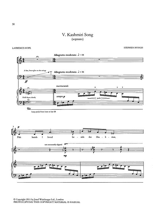 Digital Sheet Music for Kashmiri Song (soprano) by Laurence Hope, Stephen Hough scored for Piano/Vocal; id:440985