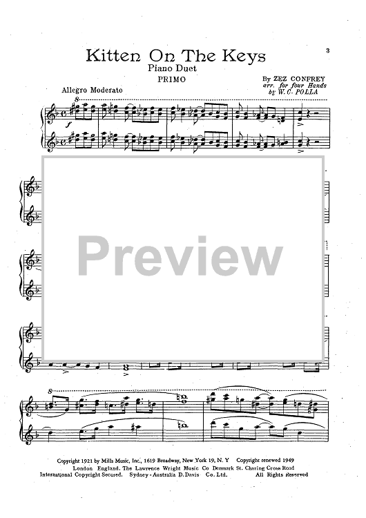 Digital Sheet Music for Kitten on the Keys by Zez Confrey, William C. Polla scored for 1 Piano, 4 Hands; id:424205