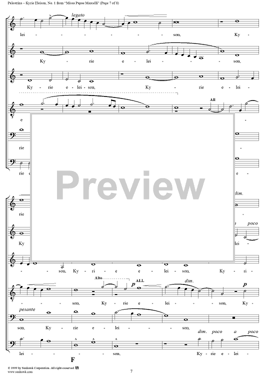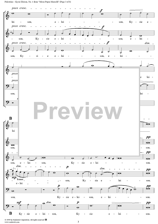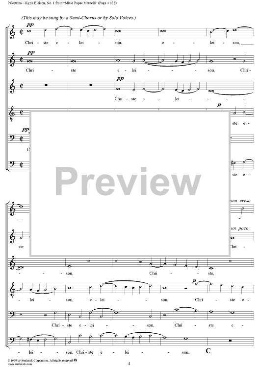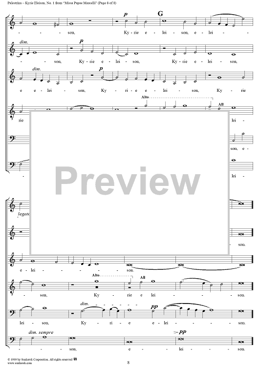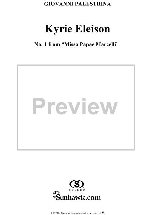 Digital Sheet Music for Kyrie Eleison - No. 1 from "Missa Papae Marcelli" by Giovanni Pierluigi da Palestrina scored for Mixed Chorus; id:254159