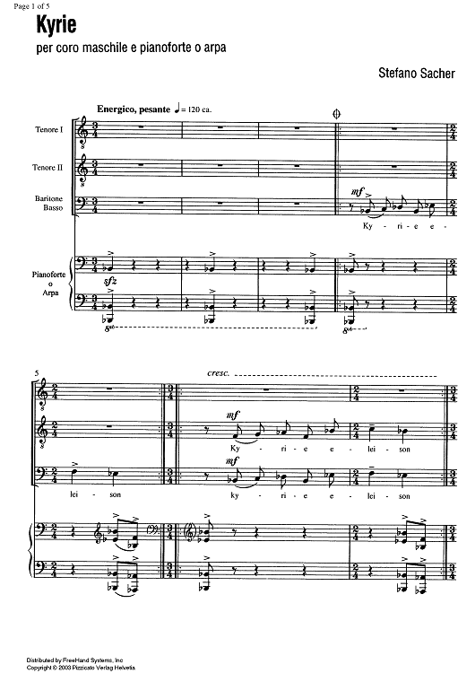 Digital Sheet Music for Kyrie by , Stefano Sacher scored for TTB Male Chorus/Piano or Harp; id:351767