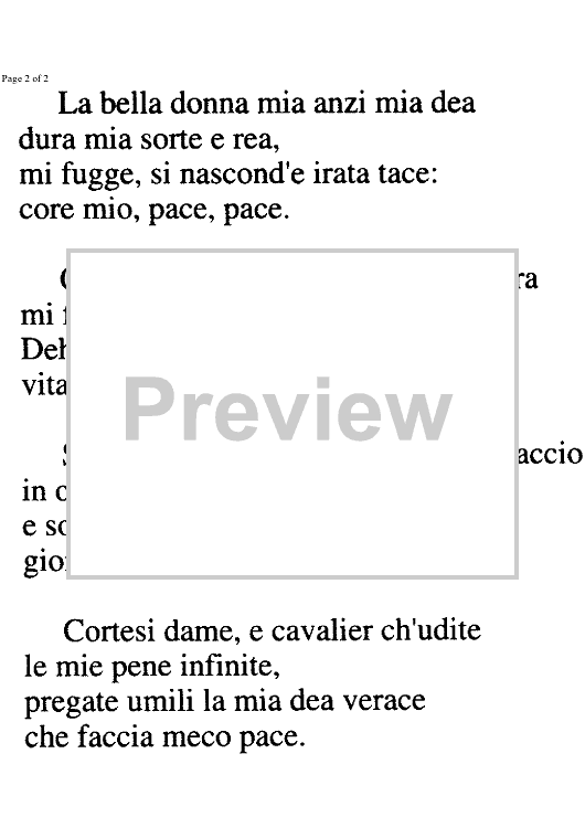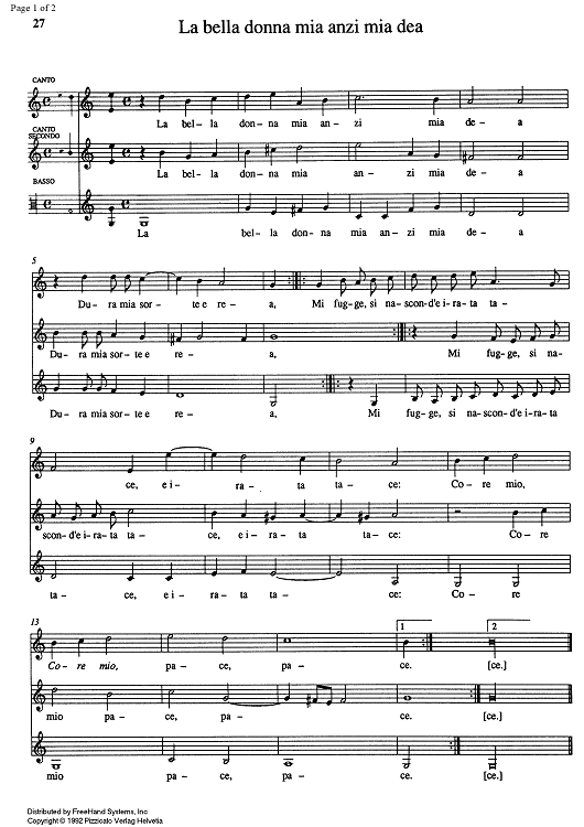 "La bella donna mia anzi mia dea" Sheet Music by Alessandro Orologio