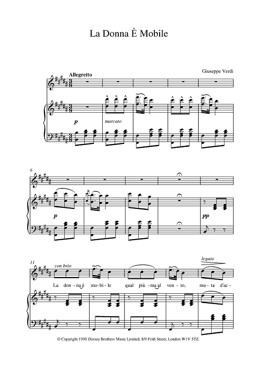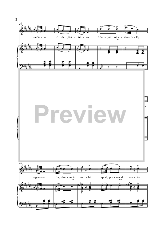 Digital Sheet Music for La Donna E Mobile by Giuseppe Verdi scored for Piano/Vocal/Chords; id:382689