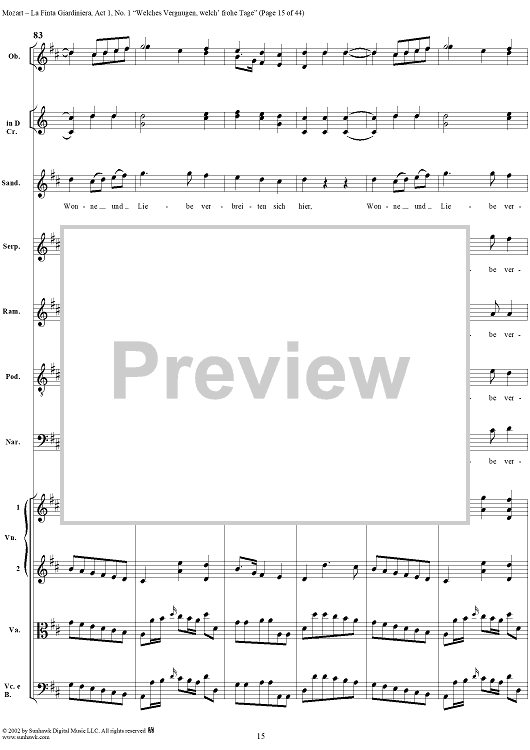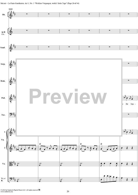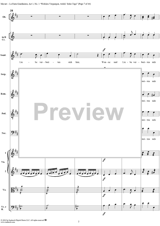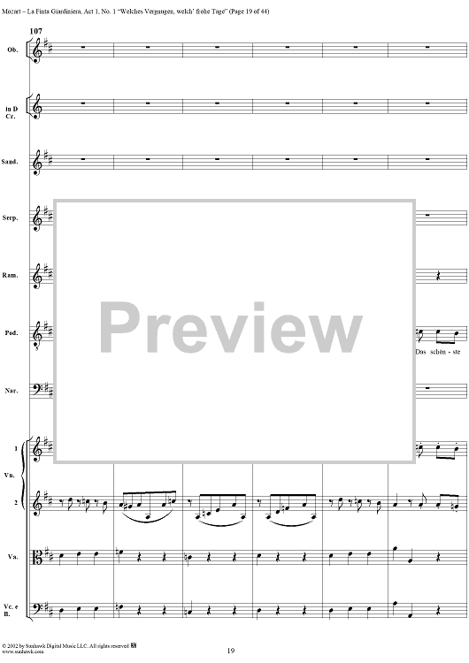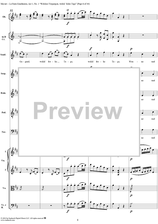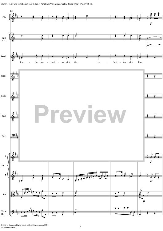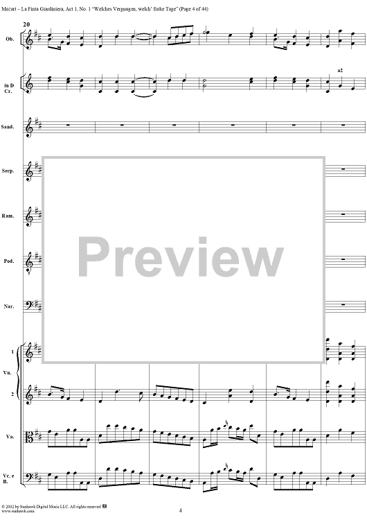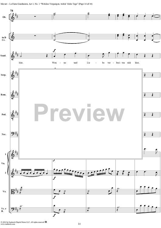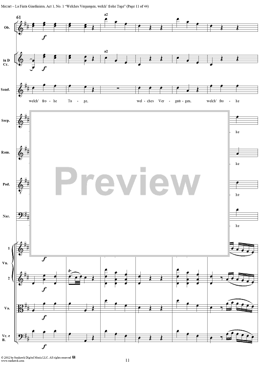 Digital Sheet Music for La Finta Giardiniera, Act 1, No. 1 "Introduction" - Full Score by Wolfgang Amadeus Mozart scored for Soli/SATB/Orchestra; id:291040
