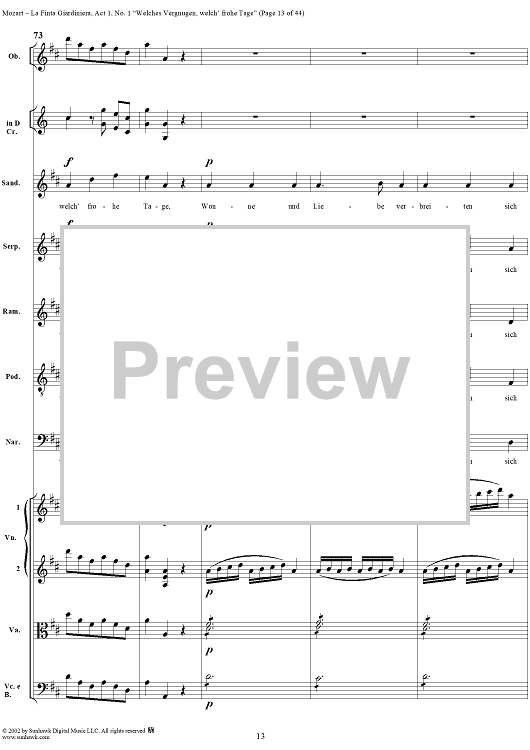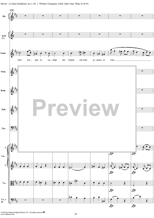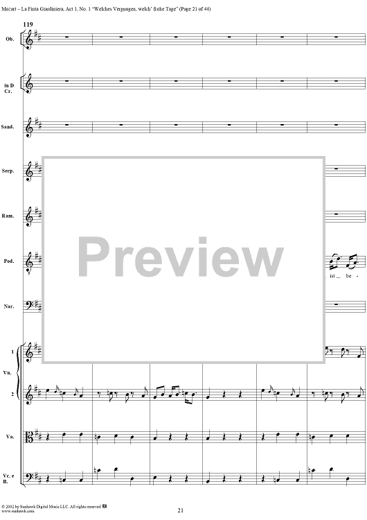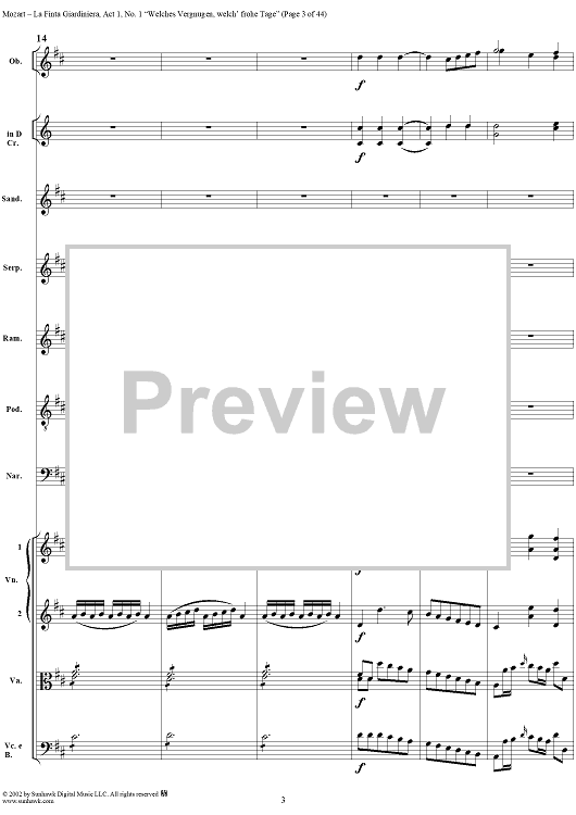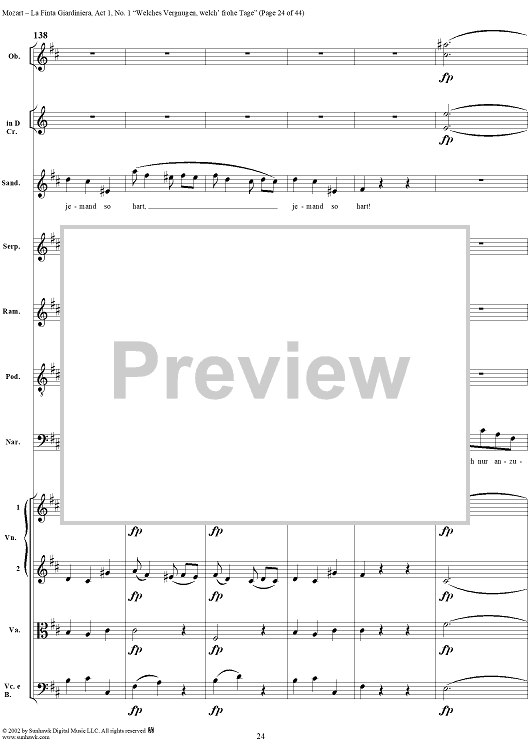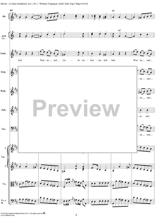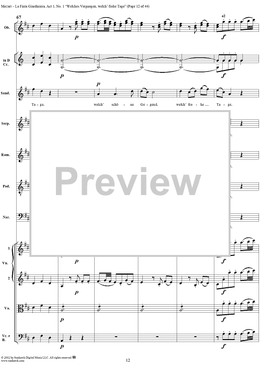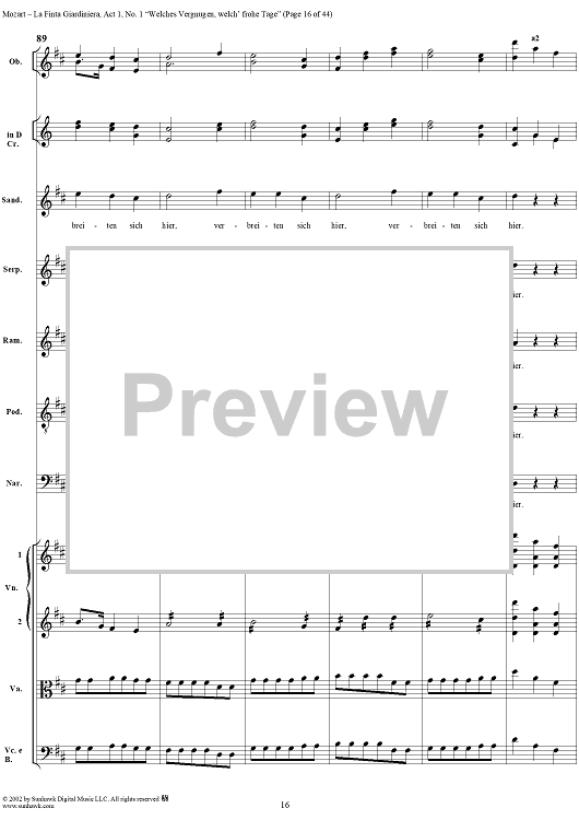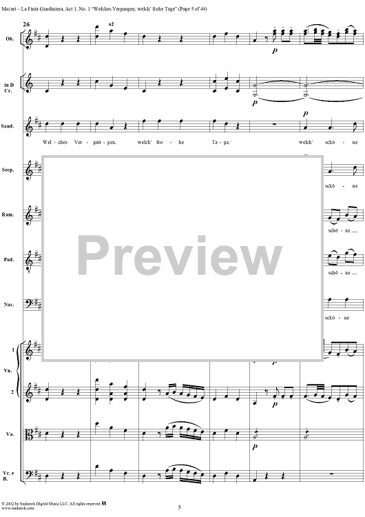 Digital Sheet Music for La Finta Giardiniera, Act 1, No. 1 "Introduction" - Full Score by Wolfgang Amadeus Mozart scored for Soli/SATB/Orchestra; id:291040