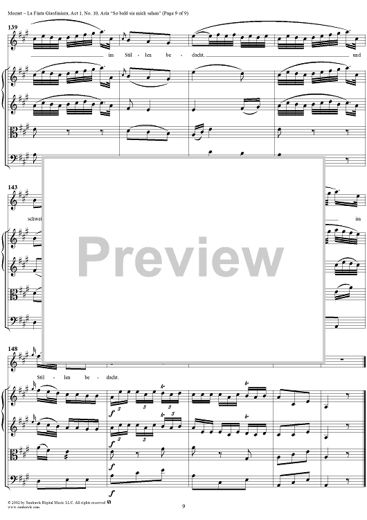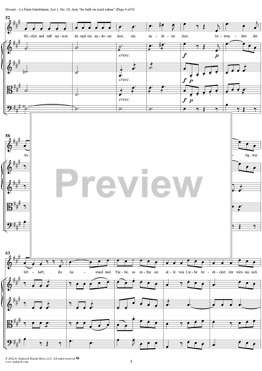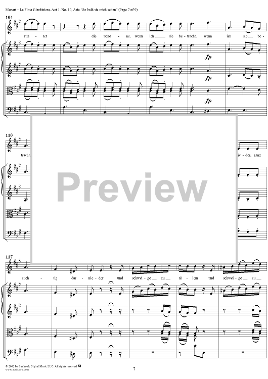 "La Finta Giardiniera, Act 1, No. 10 "So bald sie mich sehen" (Aria) - Full Score" Sheet Music by Wolfgang Amadeus Mozart