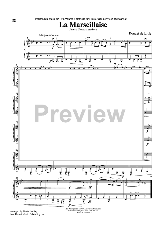 "La Marseillaise - French National Anthem" Sheet Music by Claude Rouget de Lisle