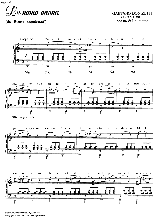 "La Ninna Nanna from Ricordi Napoletani" Sheet Music by Gaetano Donizetti