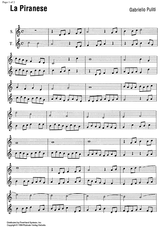 Digital Sheet Music for La Piranese by Gabriello Puliti scored for 2 Recorders; id:334449