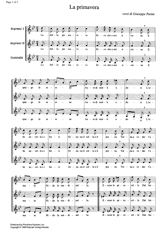 Digital Sheet Music for La Primavera by , Piero Pezzè scored for Male Choir; id:335095