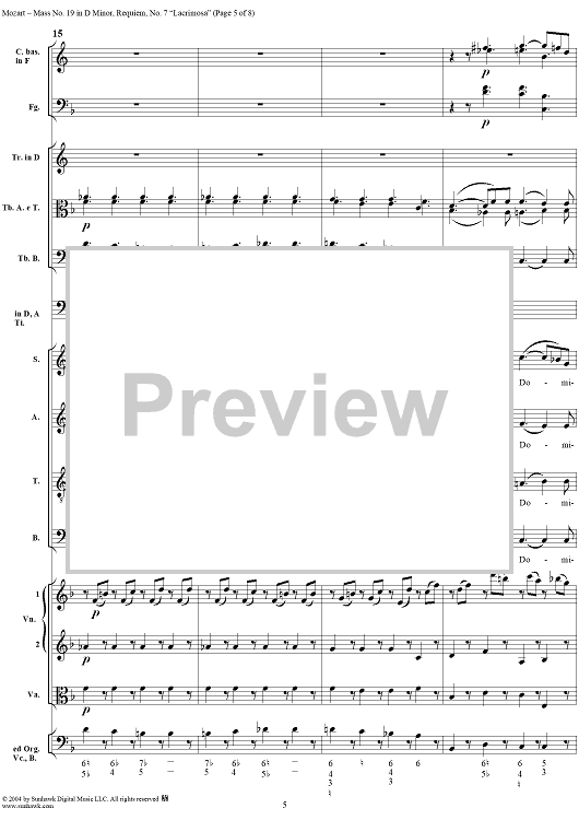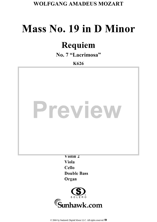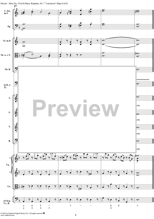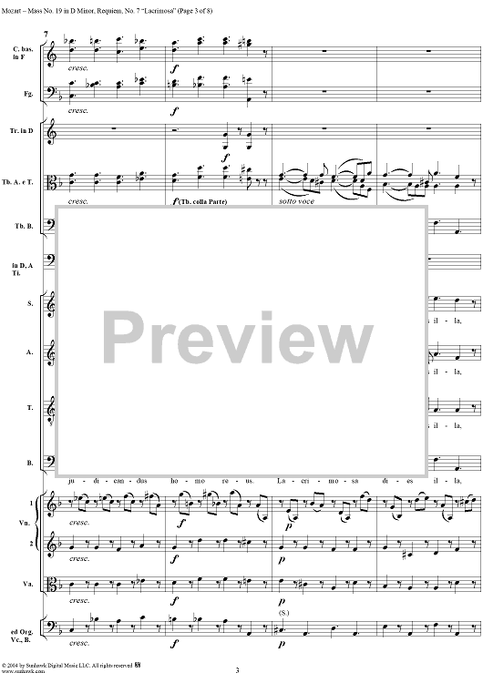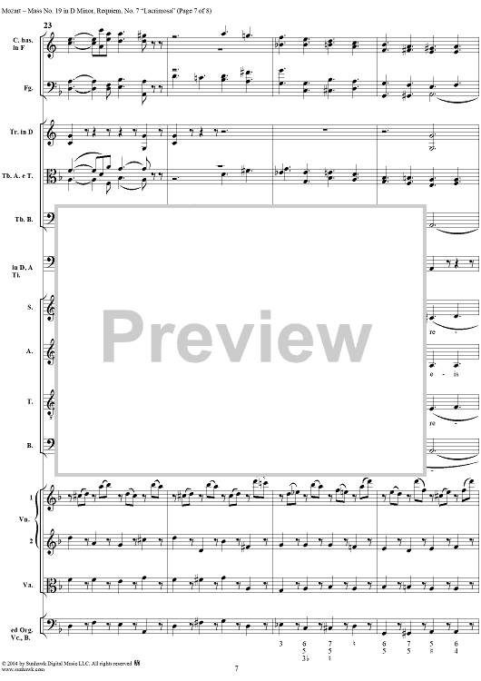 Digital Sheet Music for Lacrimosa, No. 7 from Mass No. 19 (Requiem) in D Minor, K626 - Full Score by Wolfgang Amadeus Mozart scored for Chorus and Orchestra; id:292259