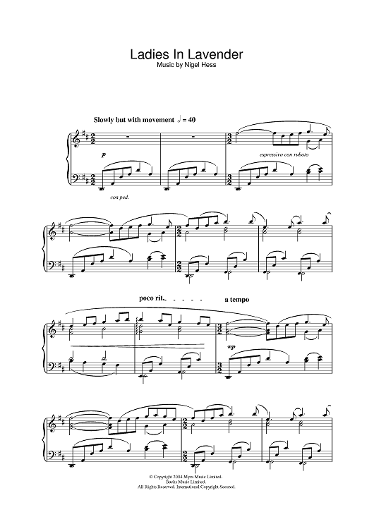 Digital Sheet Music for Ladies In Lavender by Nigel Hess scored for Piano; id:385525