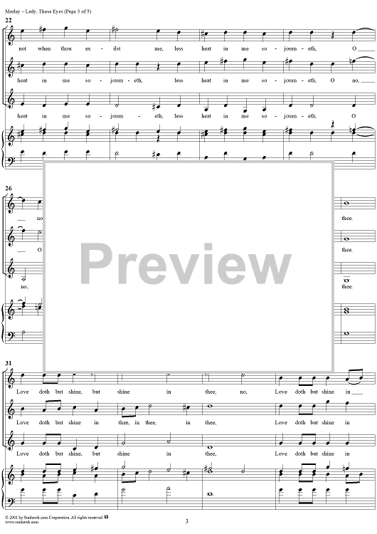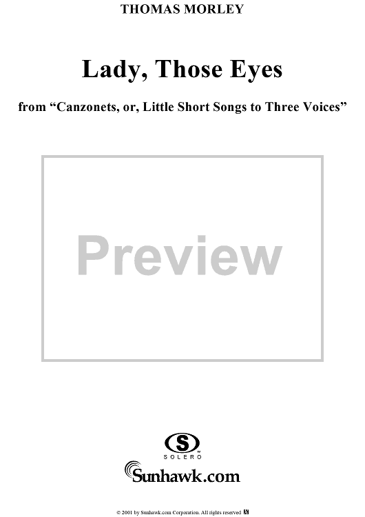 Digital Sheet Music for Lady, Those Eyes by Thomas Morley scored for Three-part Mixed Chorus; id:260187