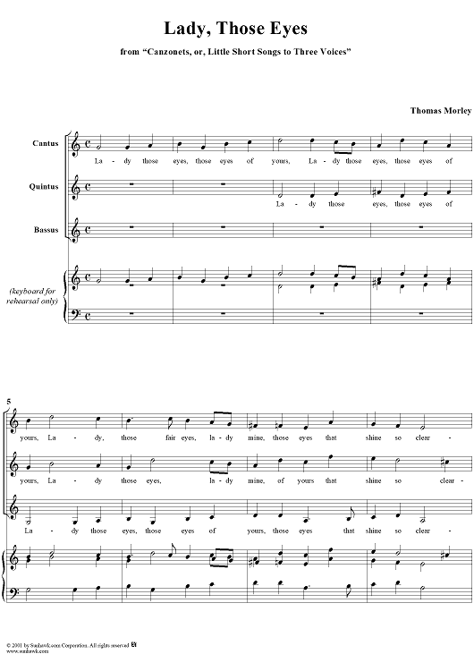 "Lady, Those Eyes" Sheet Music by Thomas Morley