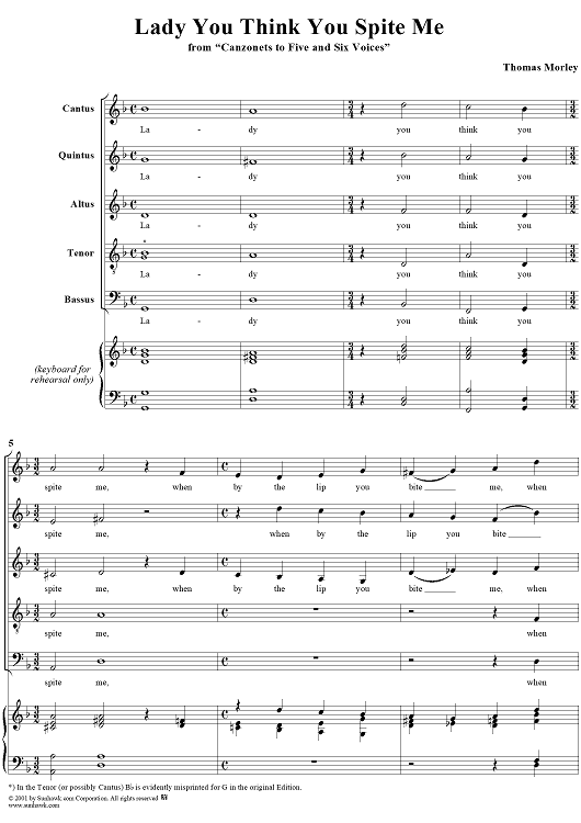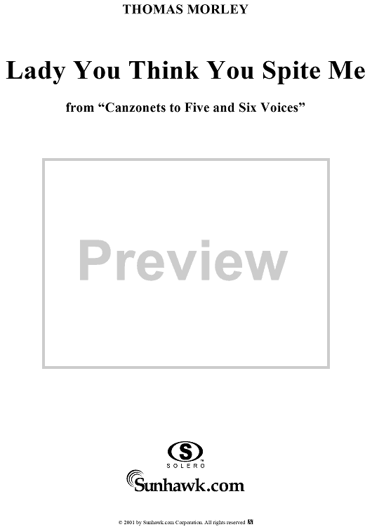 Digital Sheet Music for Lady You Think You Spite Me by Thomas Morley scored for Five-part Mixed Chorus; id:260307