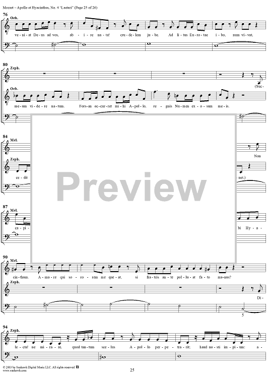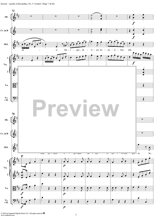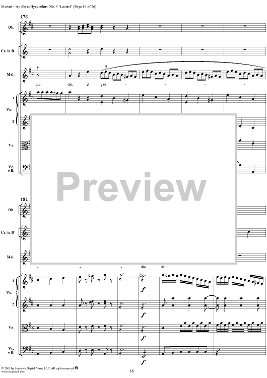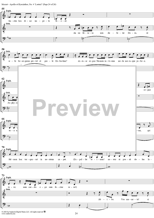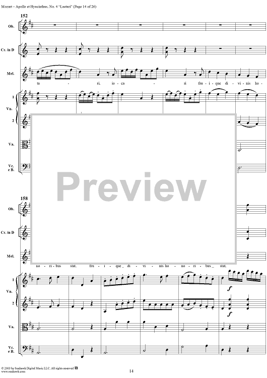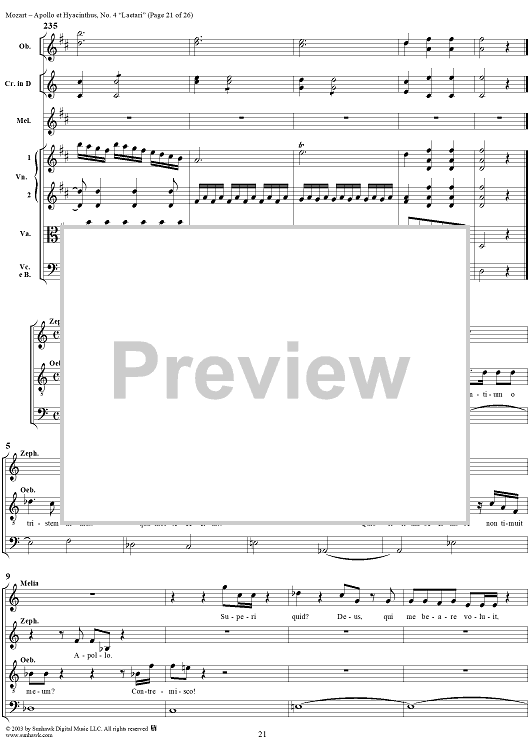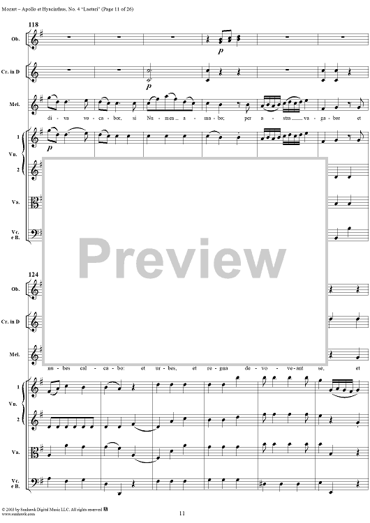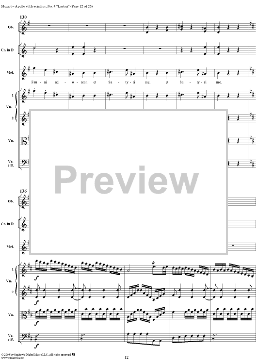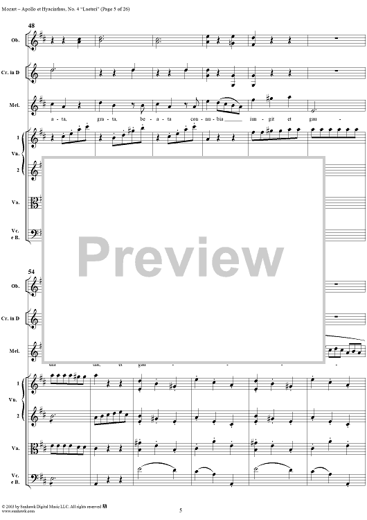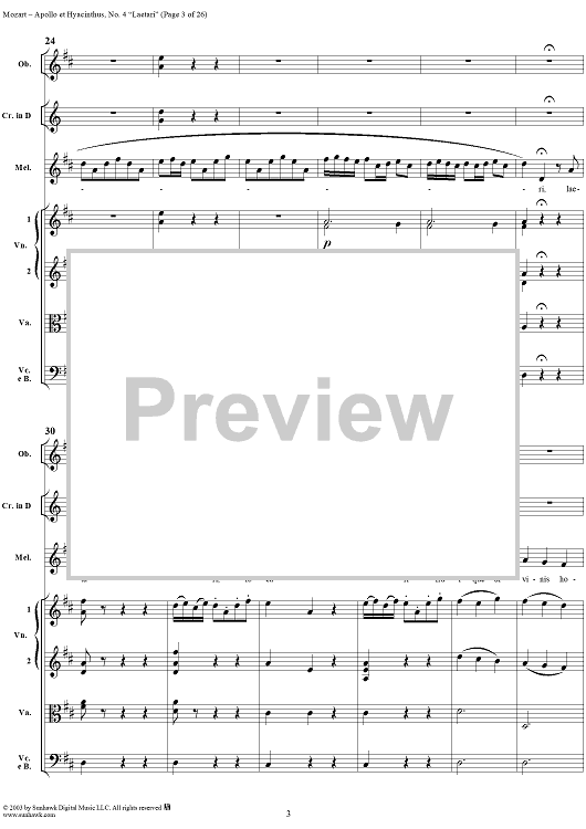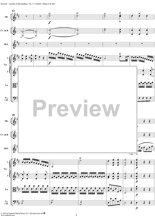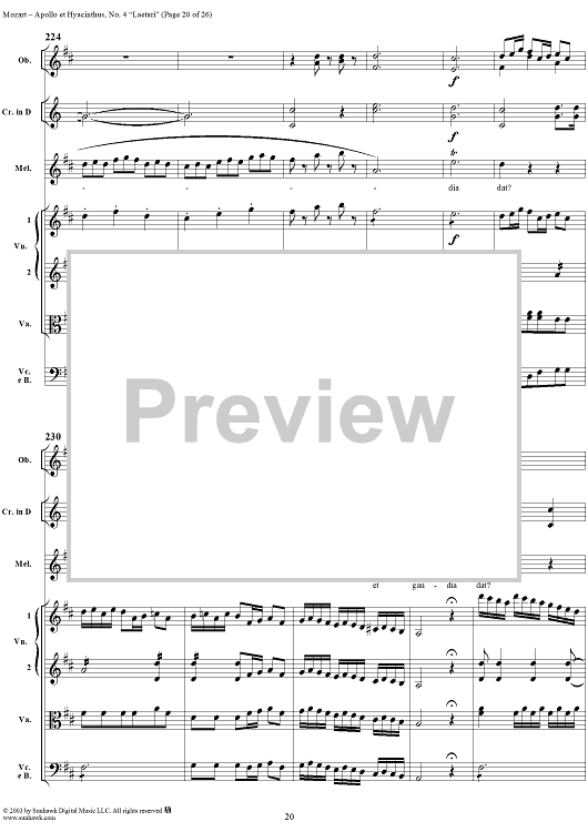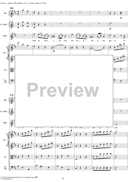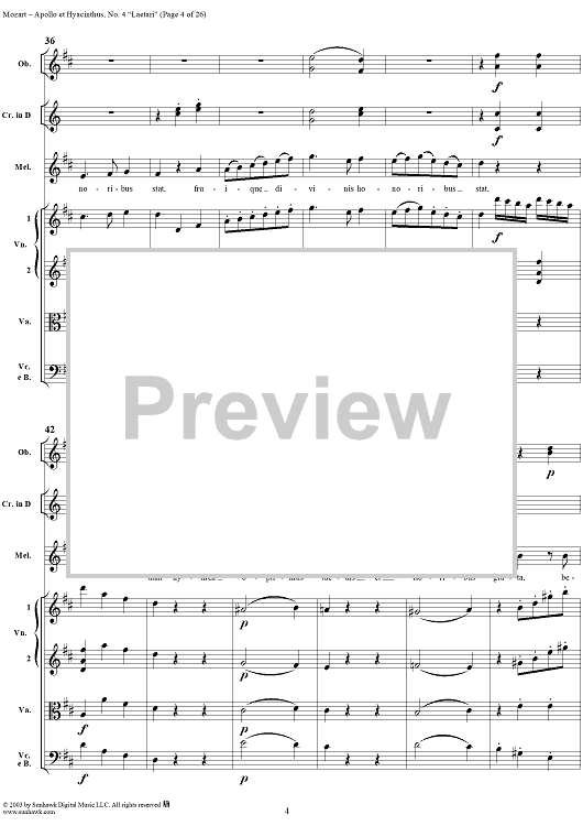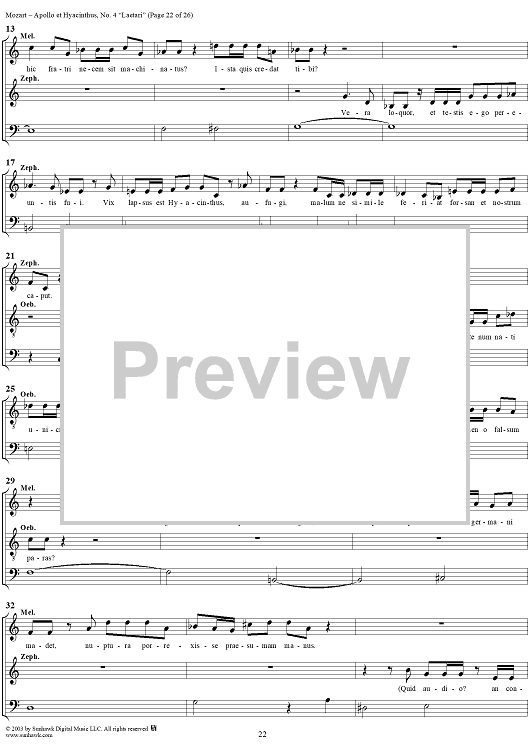 Digital Sheet Music for "Laetari", No. 4 from "Apollo et Hyacinthus" (K38) - Full Score by Wolfgang Amadeus Mozart scored for Voice and Orchestra; id:291761