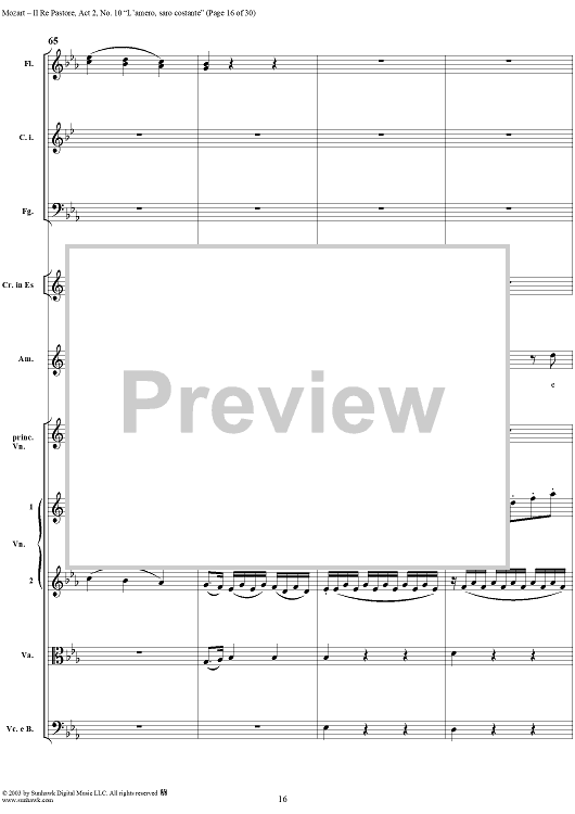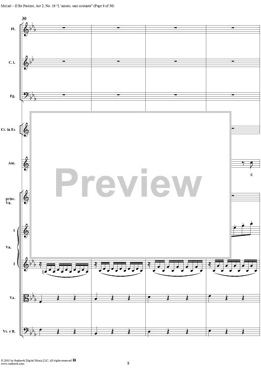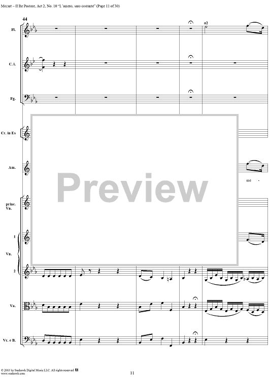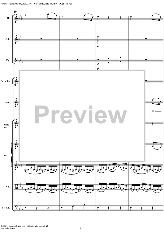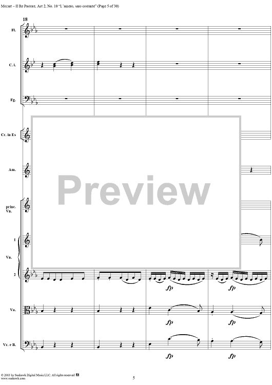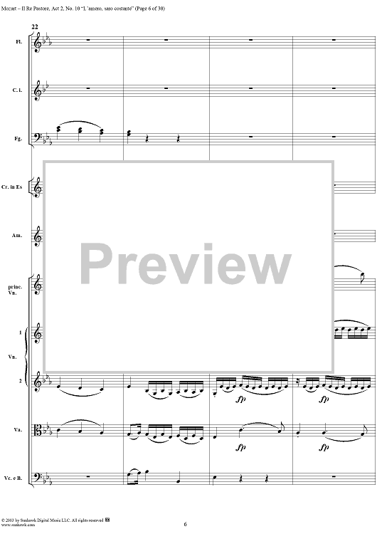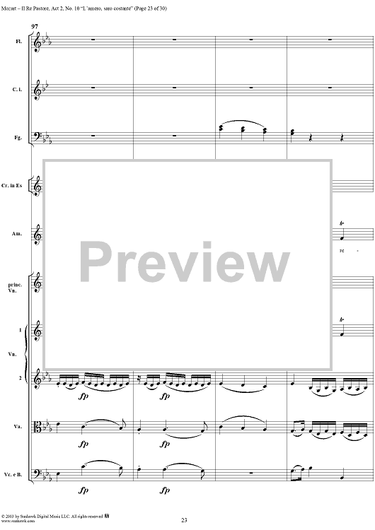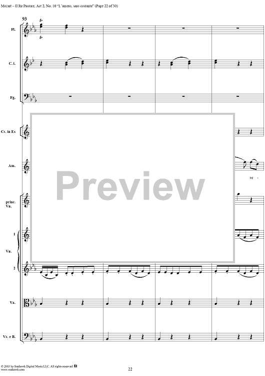 Digital Sheet Music for L'amerò, sarò costante, No. 10 from "Il Re Pastore", Act 2 (K208) - Full Score by Wolfgang Amadeus Mozart scored for Voice and Orchestra; id:291445