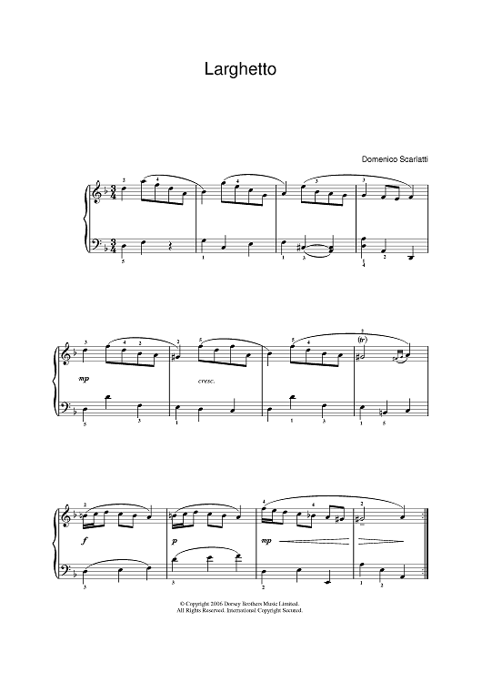 Digital Sheet Music for Larghetto by Domenico Scarlatti scored for Piano/Vocal/Chords; id:394120