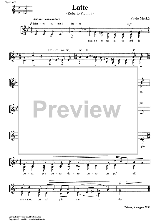 "Latte" Sheet Music by Pavle Merkù