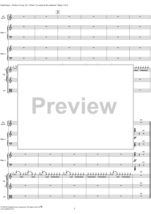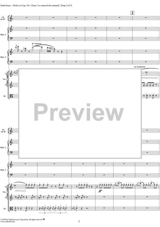 Digital Sheet Music for Le carnaval des animaux, No. 2: Cock and Hens - Score by Camille Saint-Saëns scored for Chamber Orchestra; id:259199