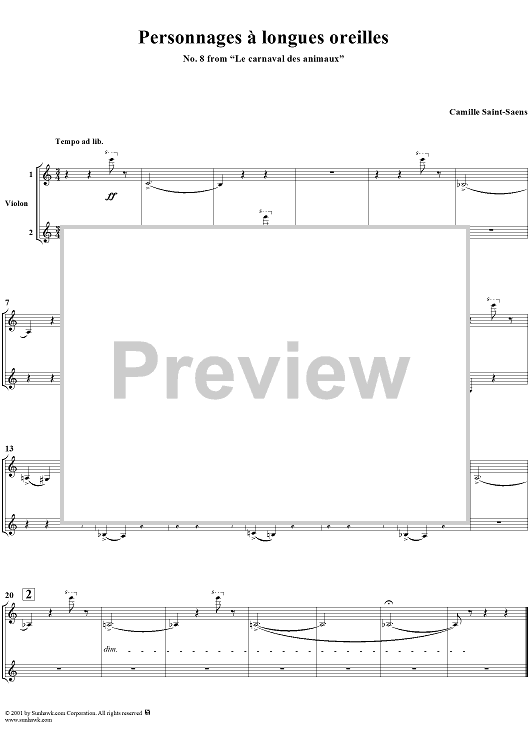 "Le carnaval des animaux, No. 8: People with Long Ears - Score" Sheet Music by Camille Saint-Saëns