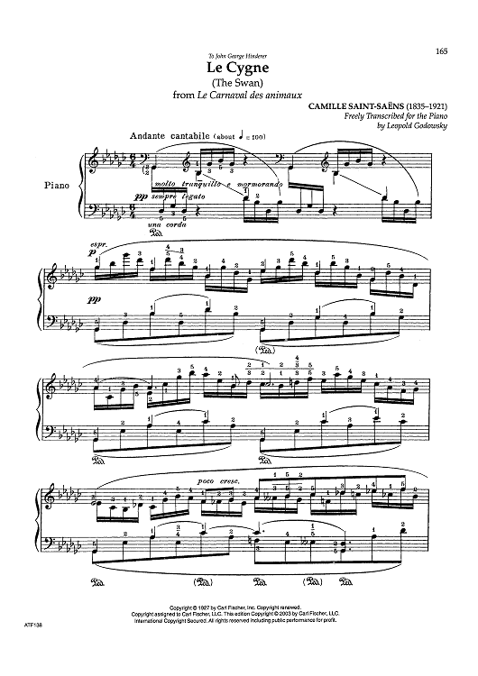 Digital Sheet Music for Le Cygne (The Swan) from Le Carnaval des animaux by Camille Saint-Saëns, Leopold Godowsky scored for Piano Solo; id:439542