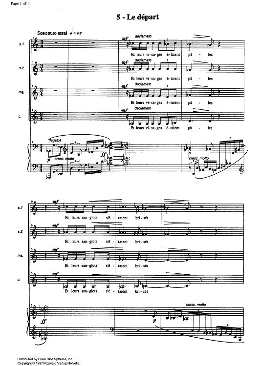 Digital Sheet Music for Le départ by , Marco Sofianopulo scored for Female Chorus/Piano; id:330823
