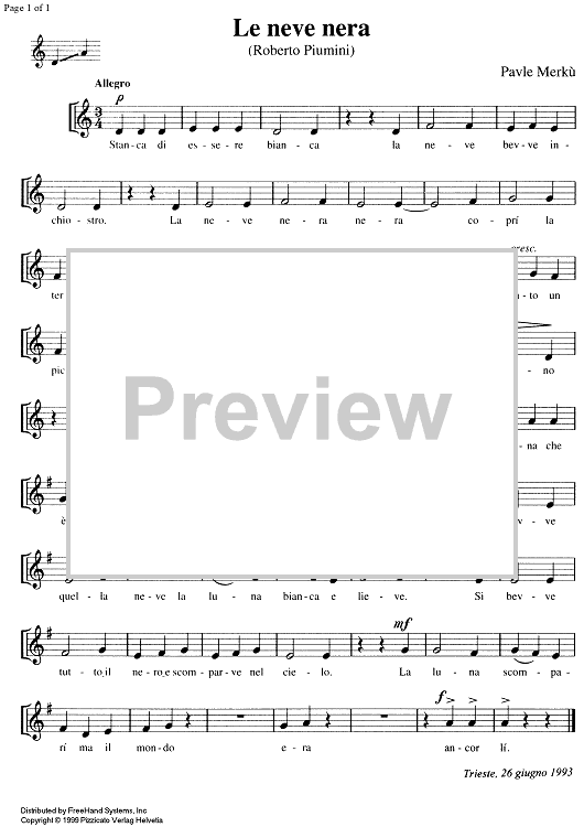 Digital Sheet Music for Le neve nera by , Pavle Merkù scored for Female Chorus; id:333945