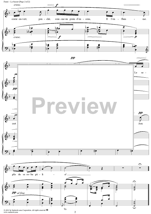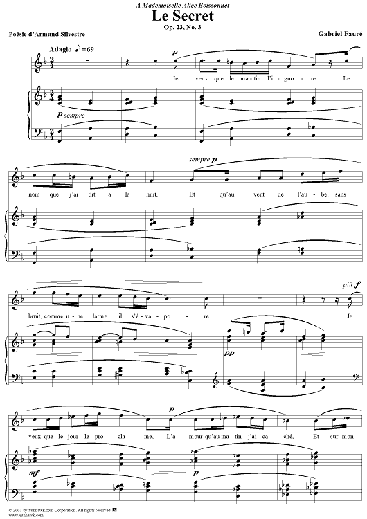 Digital Sheet Music for Le Secret by Gabriel Fauré, Armand Silvestre scored for Voice/Piano; id:189389