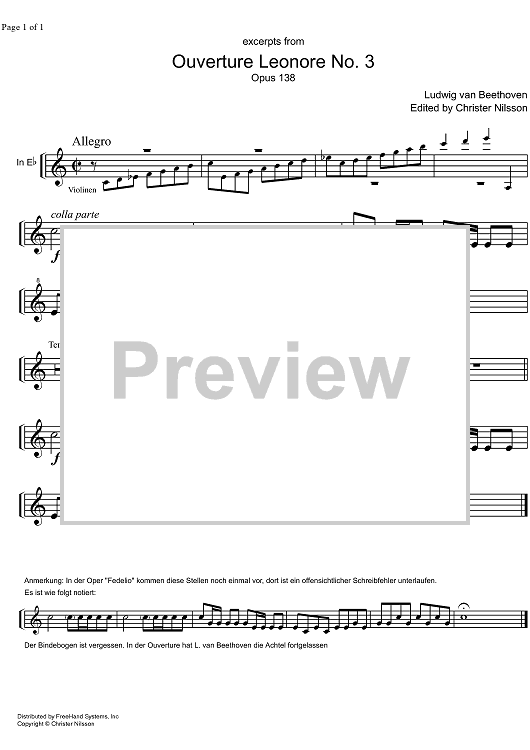 "Leonore Overture No. 3 exc." Sheet Music by Ludwig van Beethoven