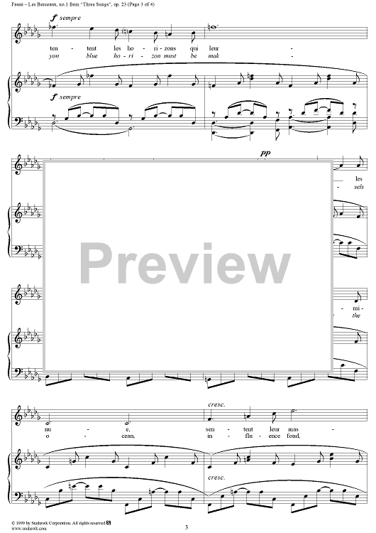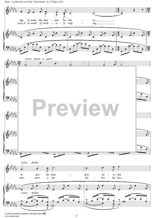 Digital Sheet Music for Les Berceaux (The Cradles) - No. 1 from "Three Songs" op. 23 by Gabriel Fauré, Rene Francois Sully-Prudhomme scored for Voice/Piano; id:270095