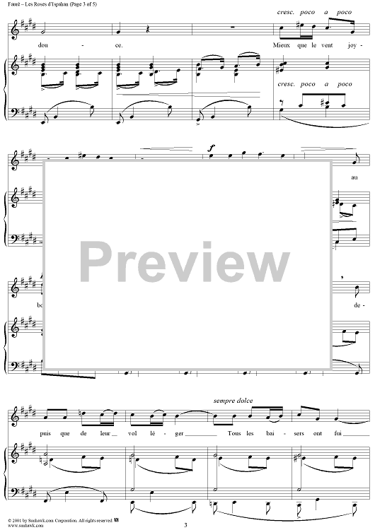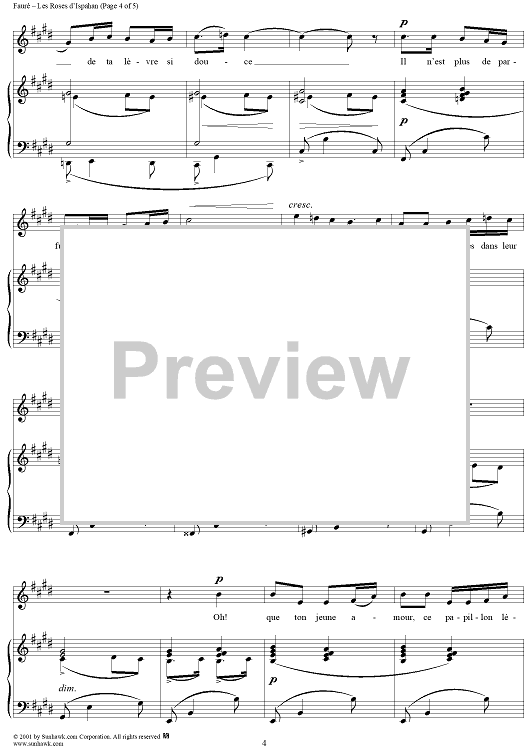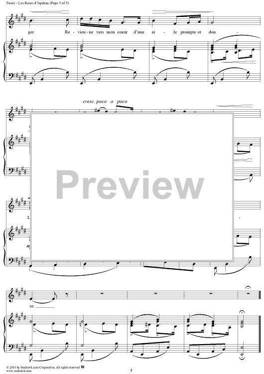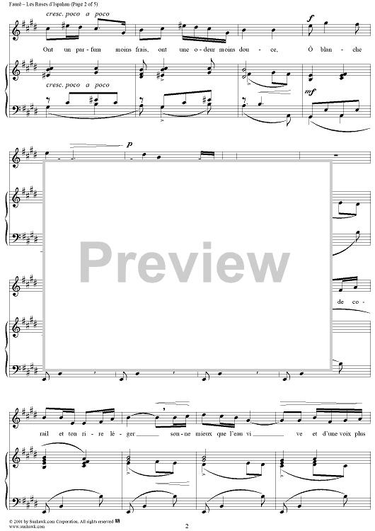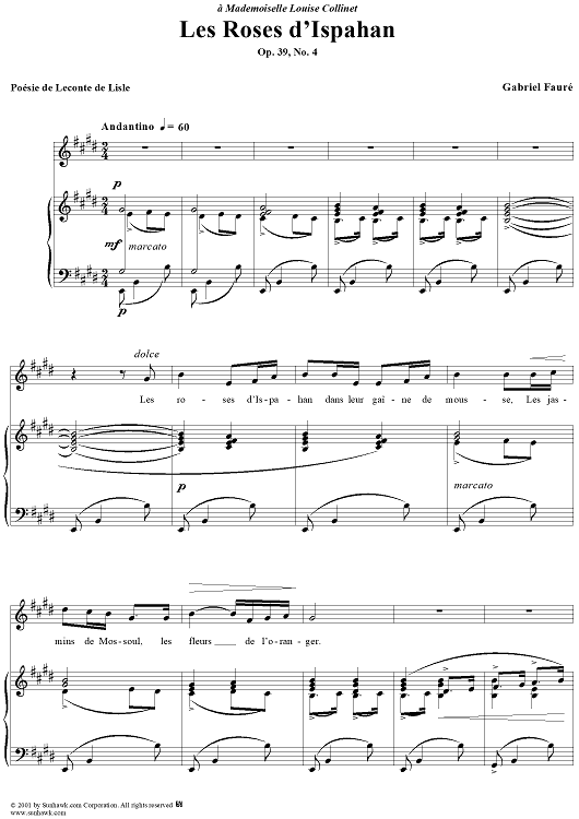 Digital Sheet Music for Les Roses d'Ispahan by Gabriel Fauré, Leconte de Lisle scored for Voice/Piano; id:189398