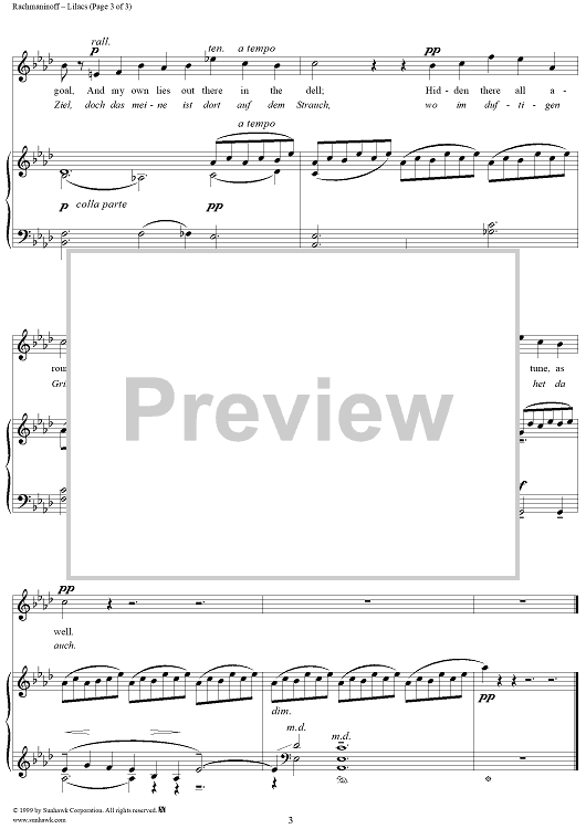 Digital Sheet Music for Lilacs, Op. 21, No. 5 by E. Beketova, Sergei Rachmaninoff scored for Voice/Piano; id:118280