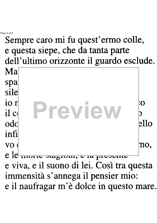 "L'infinito Sempre caro mi fu quest'ermo colle" Sheet Music by Piero Pezzè
