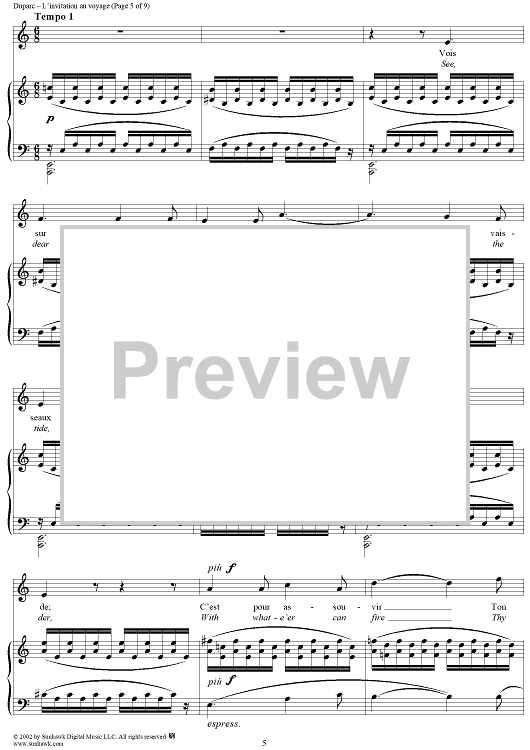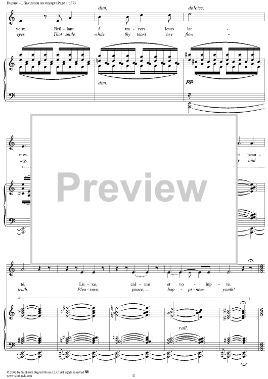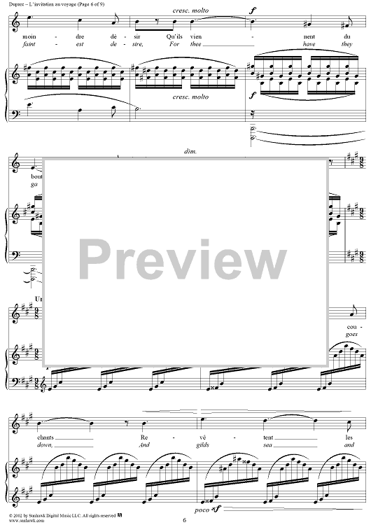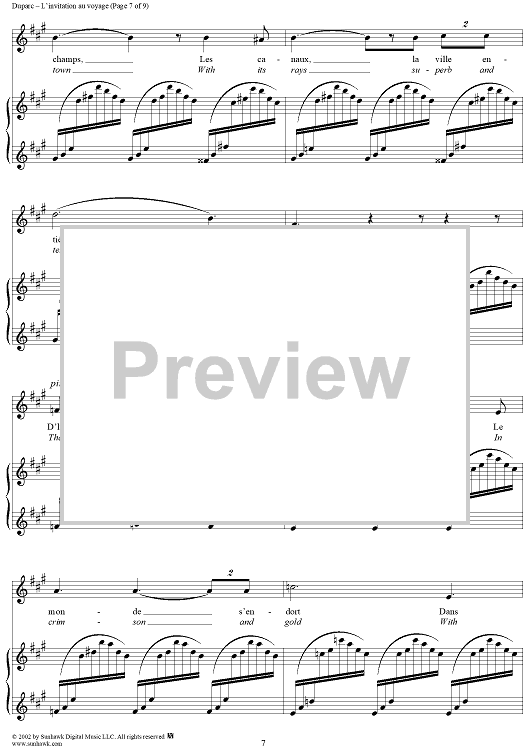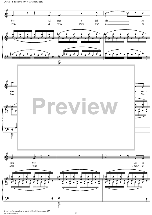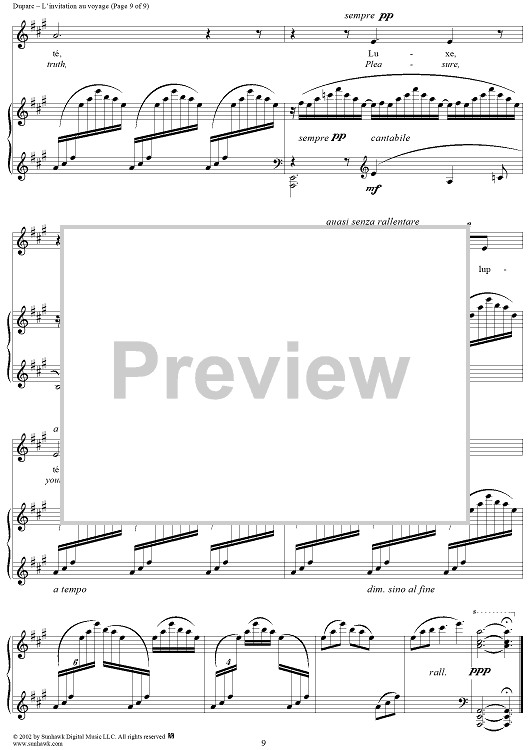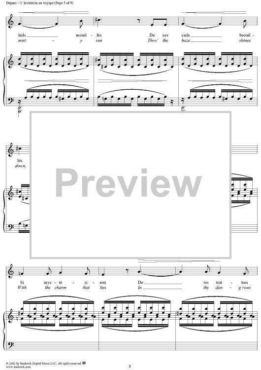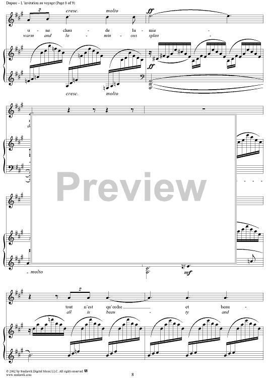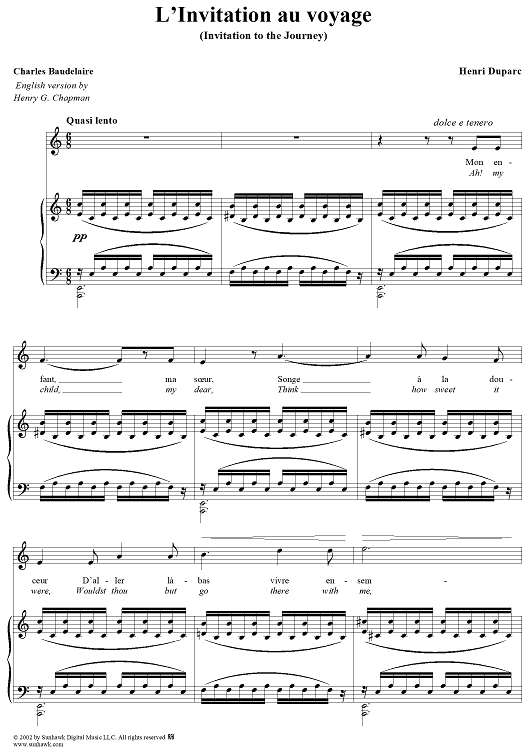 Digital Sheet Music for L'Invitation au voyage, Invitation to the Journey by Charles Baudelaire, Henri Duparc scored for Voice/Piano; id:267001