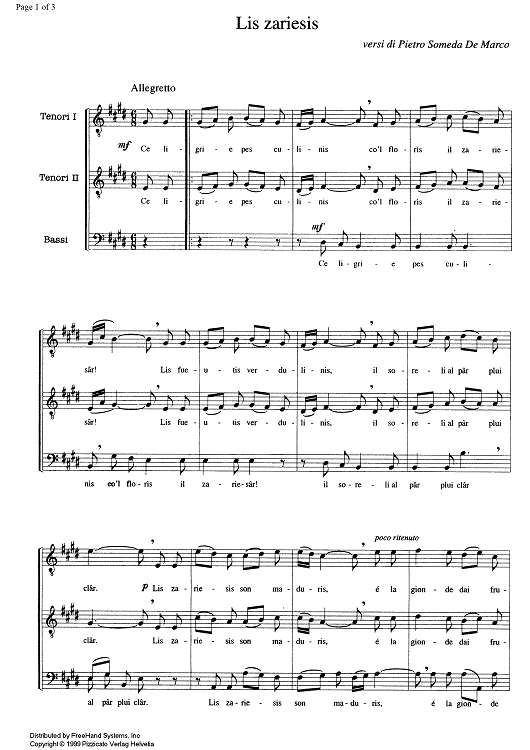 Digital Sheet Music for Lis zariesis by , Piero Pezzè scored for Male Choir; id:335096