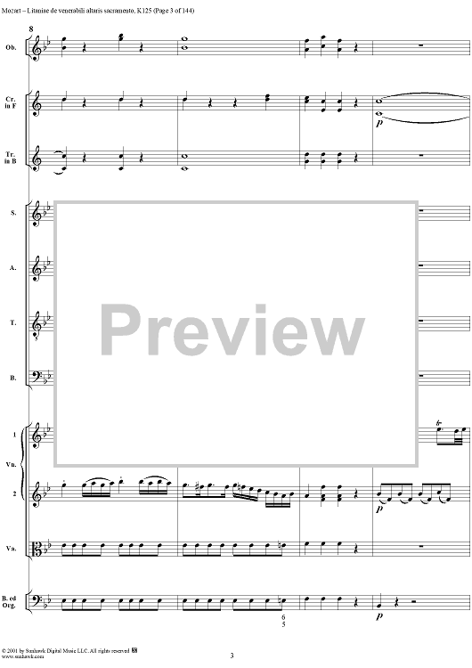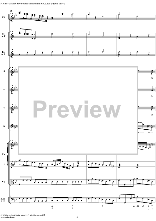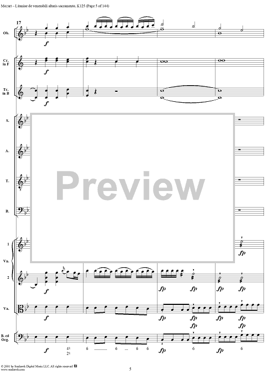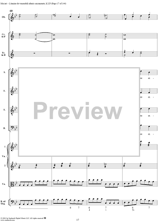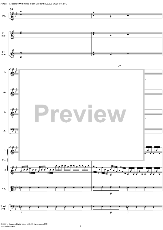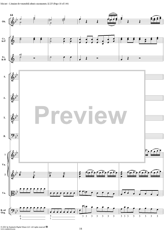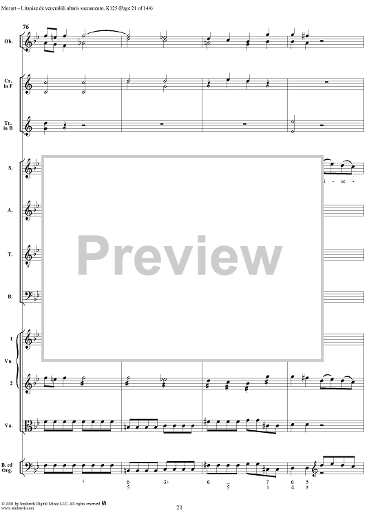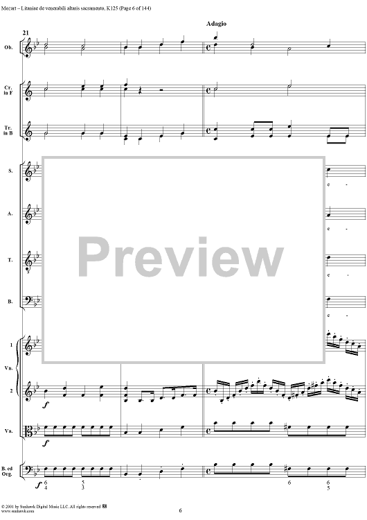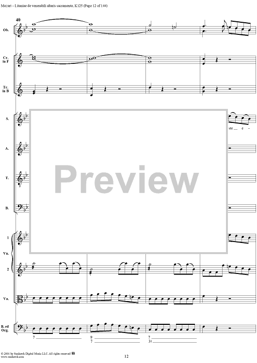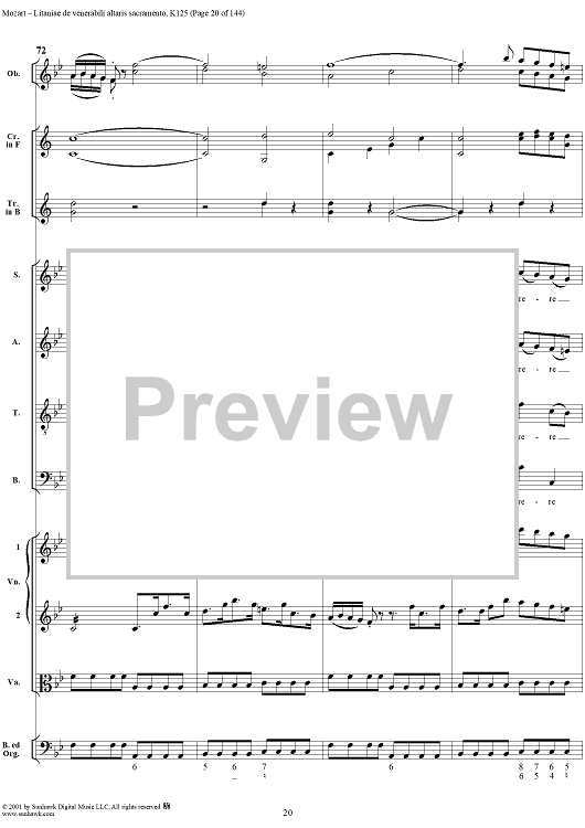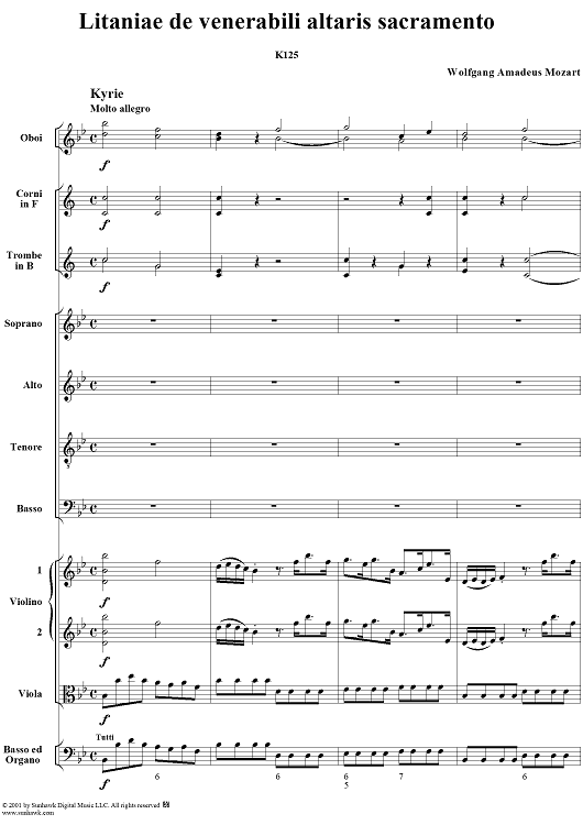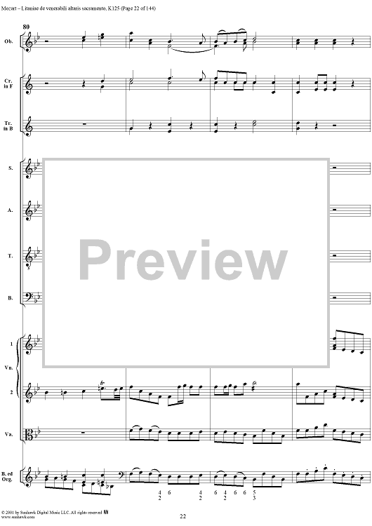 Digital Sheet Music for Litaniae de venerabili altaris sacramento in B-flat Major, K125 by Wolfgang Amadeus Mozart scored for Four-part Mixed Chorus/Orchestra; id:263258