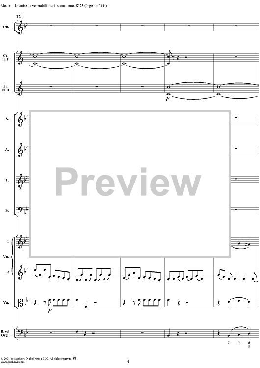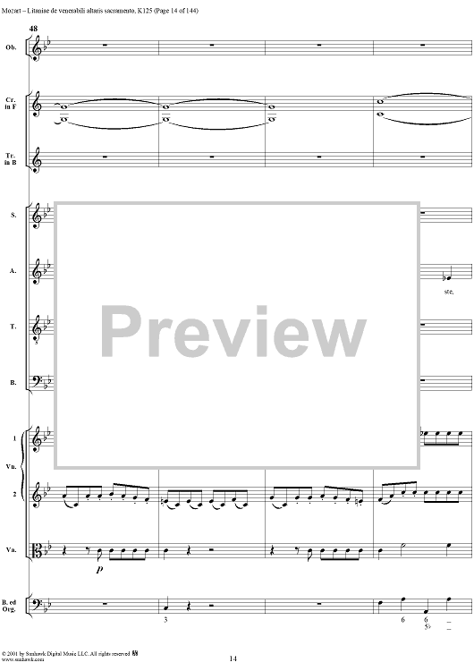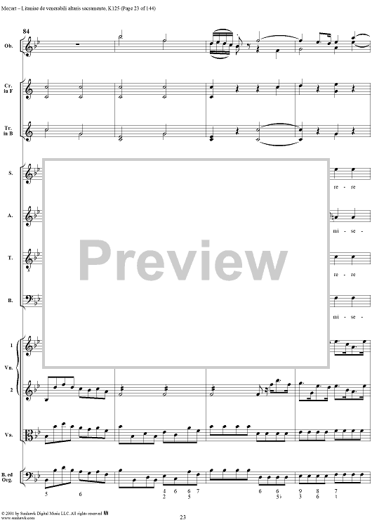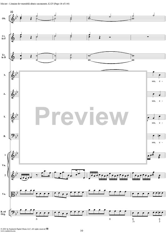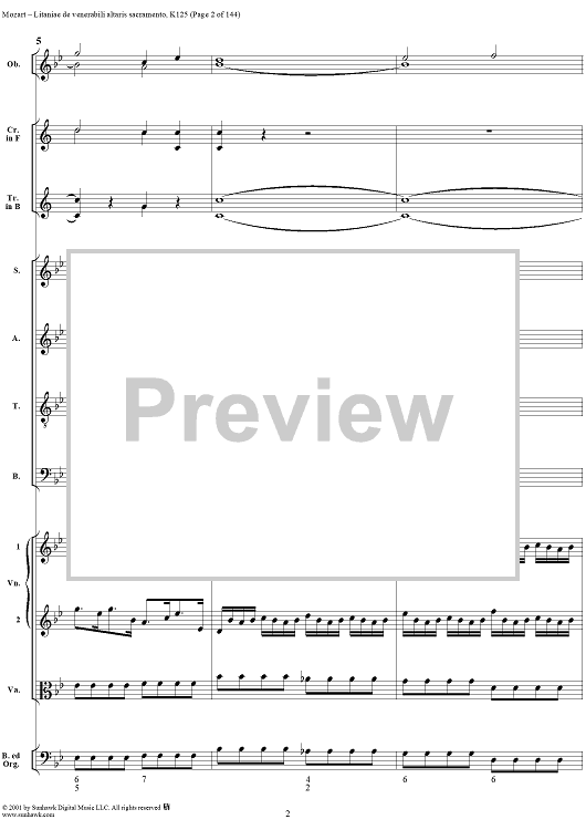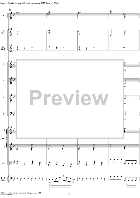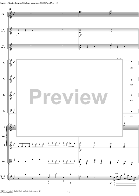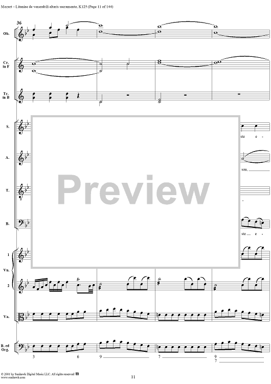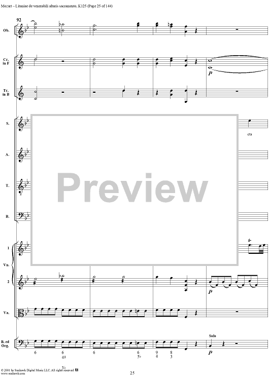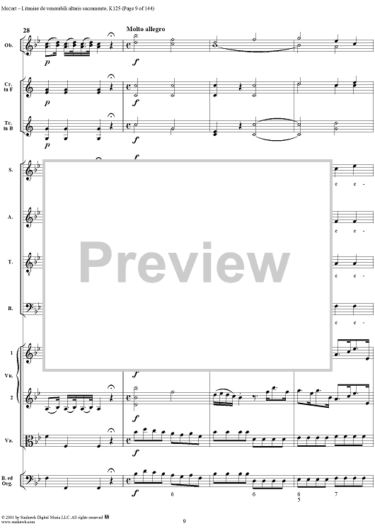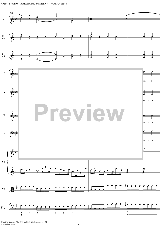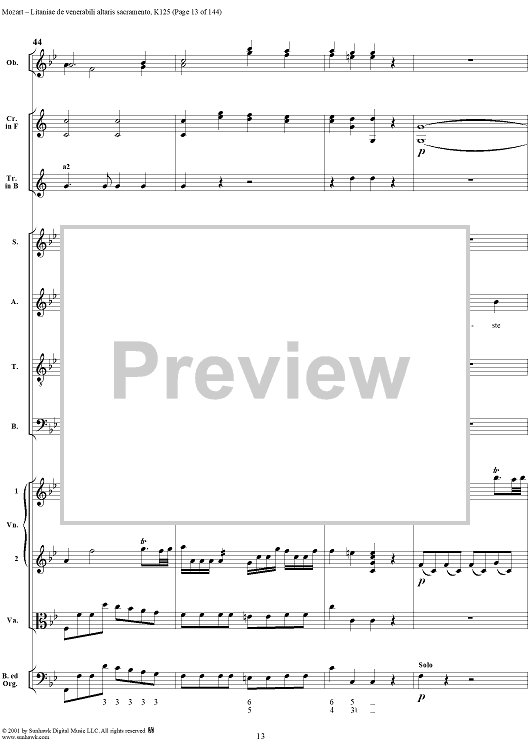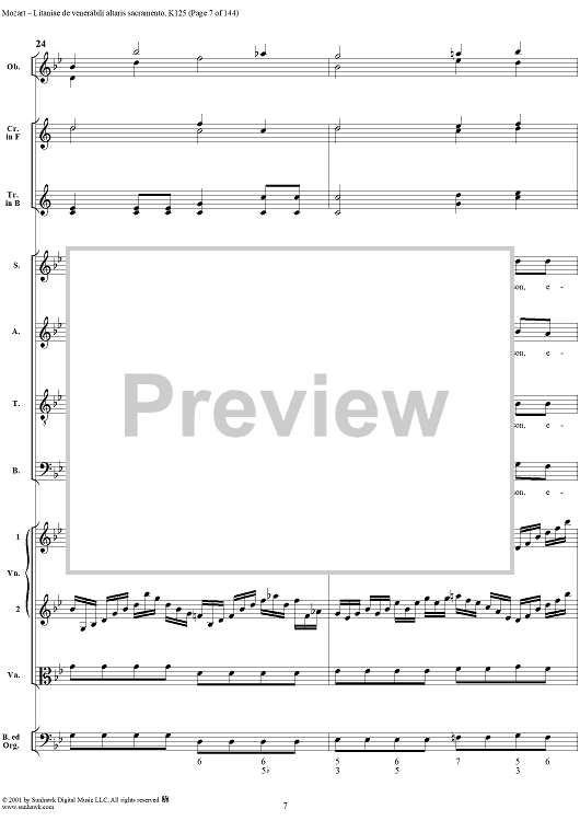 Digital Sheet Music for Litaniae de venerabili altaris sacramento in B-flat Major, K125 by Wolfgang Amadeus Mozart scored for Four-part Mixed Chorus/Orchestra; id:263258