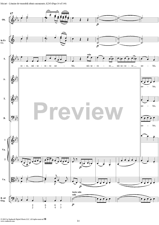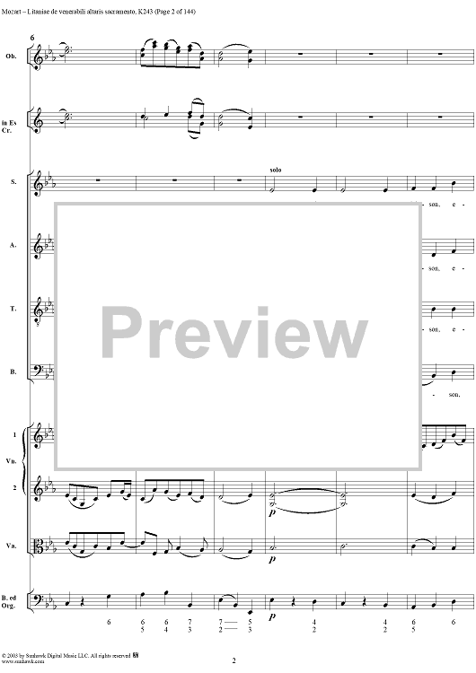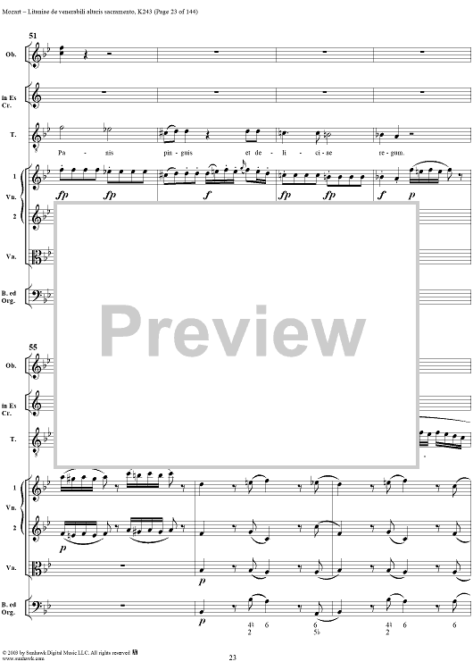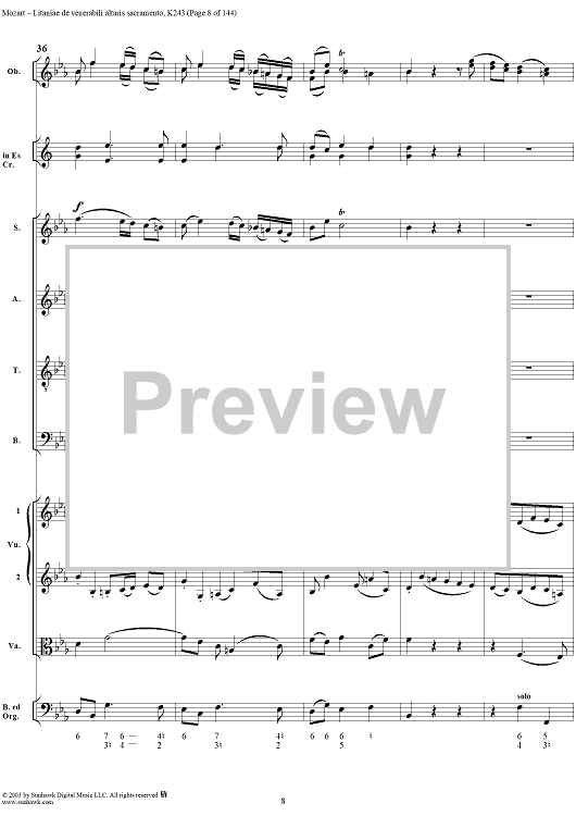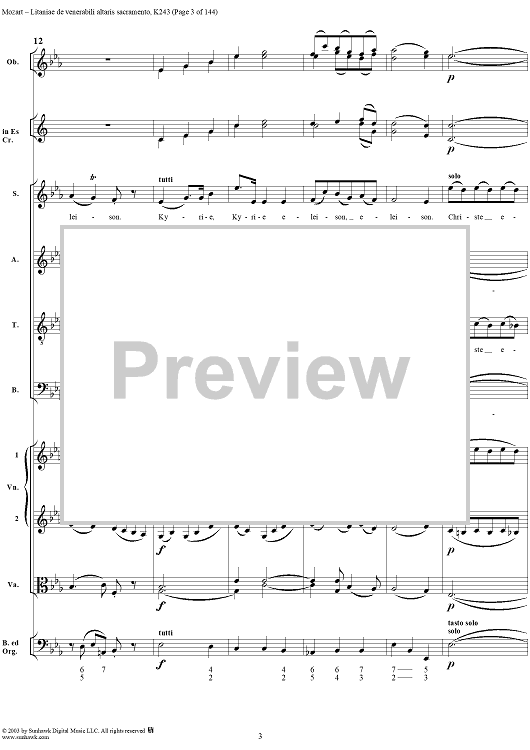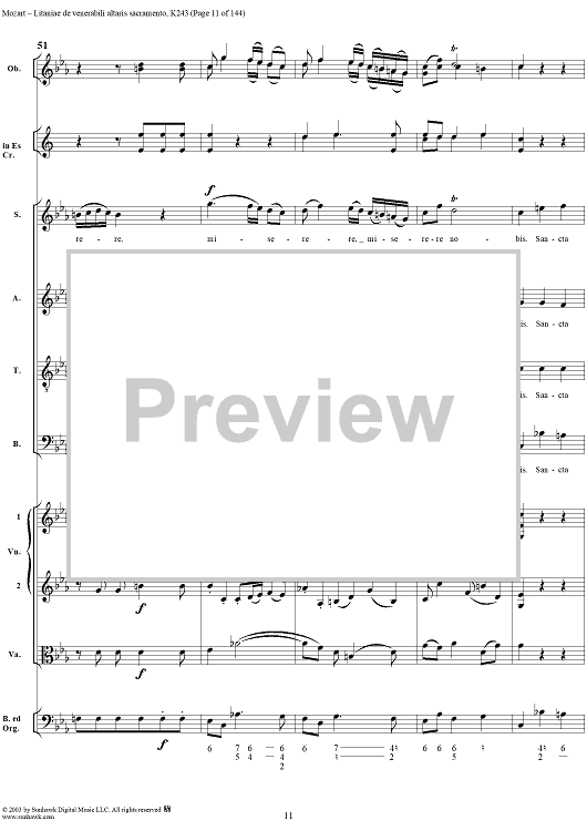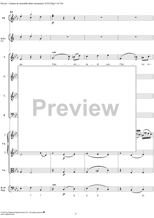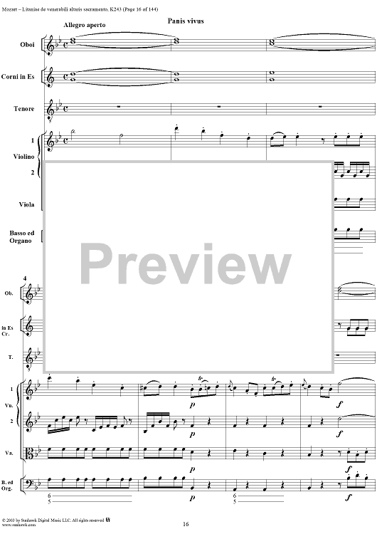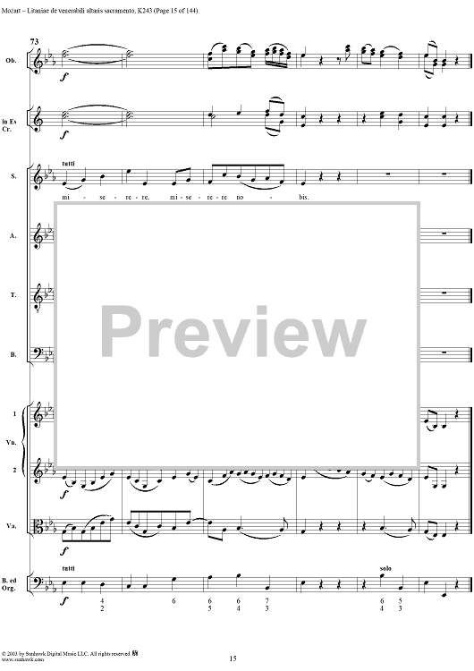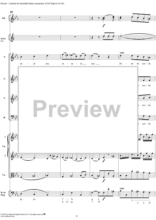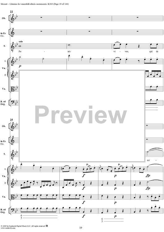 Digital Sheet Music for "Litaniae de venerabili altaris sacramento", in E-flat Major, K243 - Full Score by Wolfgang Amadeus Mozart scored for Chorus and Orchestra; id:270759
