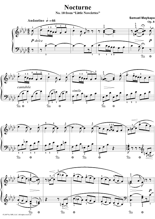 "Little Novelettes. 10. Nocturne" Sheet Music by Samuel Maykapar