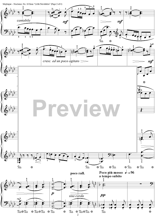 Digital Sheet Music for Little Novelettes. 10. Nocturne by , Samuel Maykapar scored for Piano Solo; id:365396