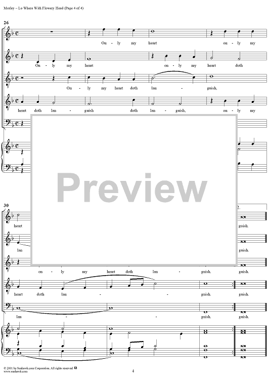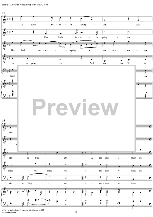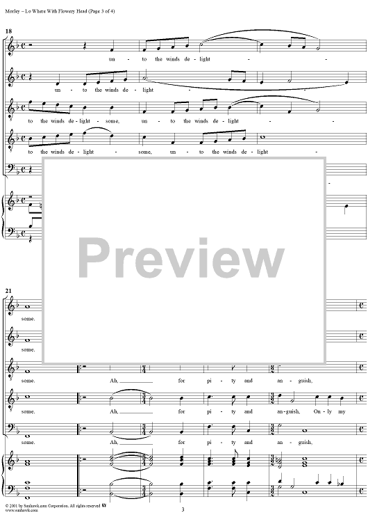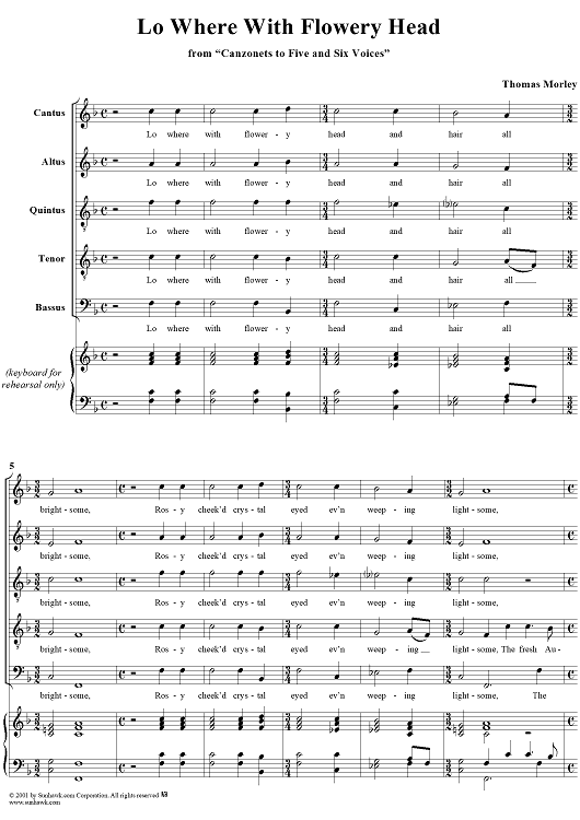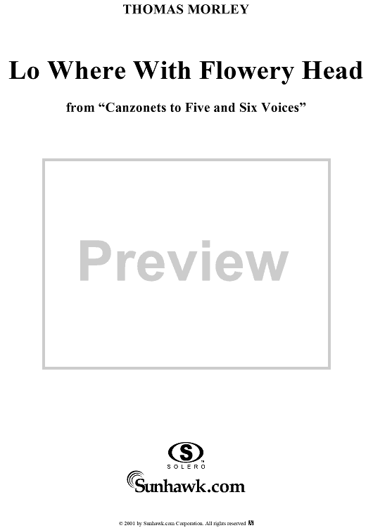 Digital Sheet Music for Lo Where With Flowery Head by Thomas Morley scored for Five-part Mixed Chorus; id:260318