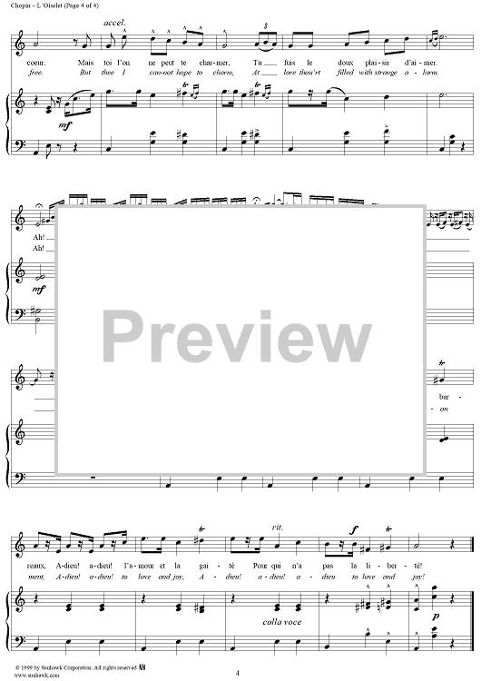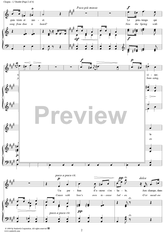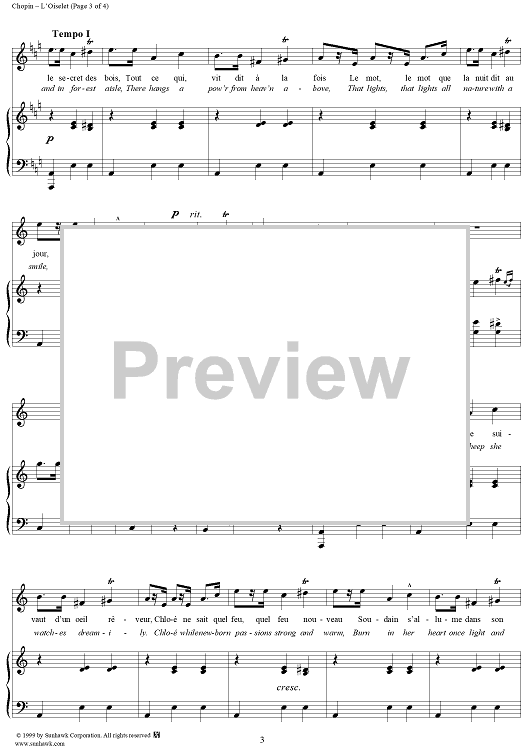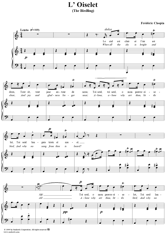 Digital Sheet Music for L'Oiselet by Frederic Chopin scored for Voice/Piano; id:240846