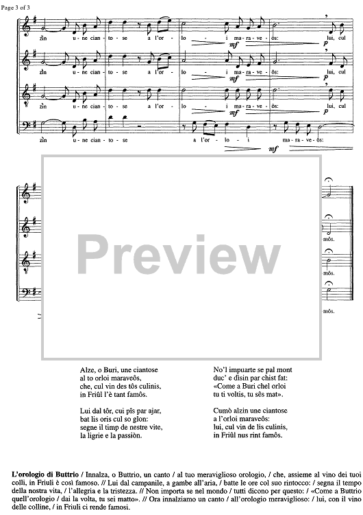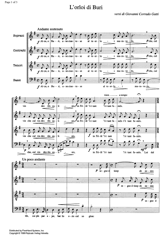 Digital Sheet Music for L'orloi di Buri by , Piero Pezzè scored for SATB Choir; id:335110