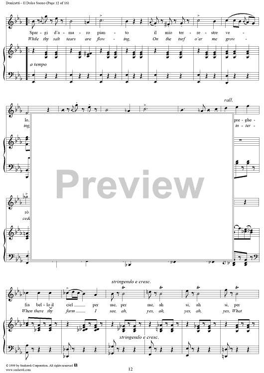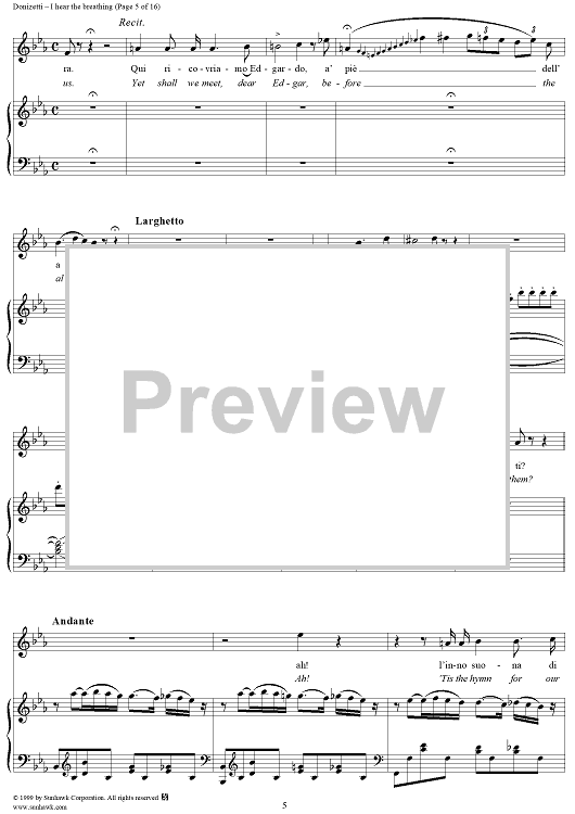 Digital Sheet Music for Lucia di Lammermoor, Il dolce suono, (I hear the breathing) by Gaetano Donizetti scored for Voice/Piano; id:253845
