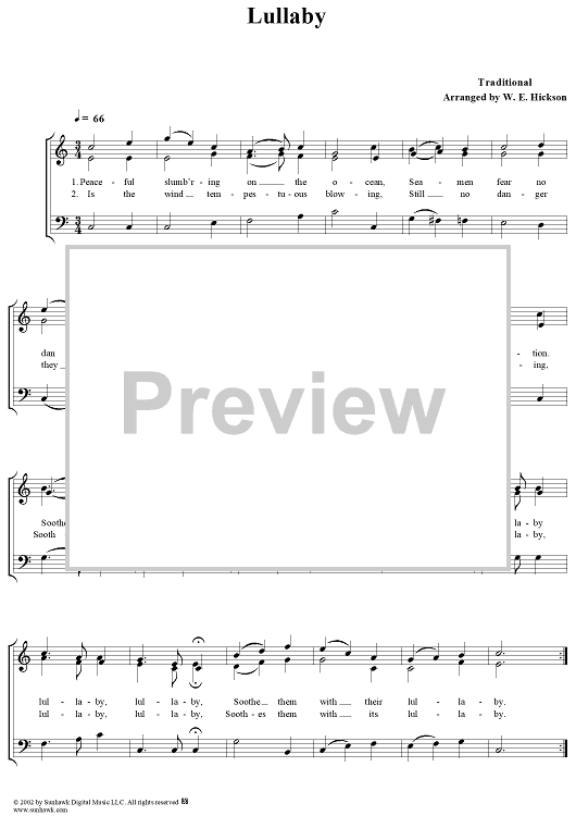 Digital Sheet Music for Lullaby by William E. Hickson, Traditional scored for Three-part Mixed Chorus; id:261390