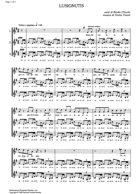 Digital Sheet Music for Lusignutis by , Giulio Viozzi scored for Female Chorus; id:334495