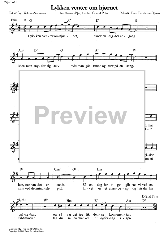 Digital Sheet Music for Lykken venter om hjornet - C Instruments by Bent Fabric scored for Lead Sheet; id:338599