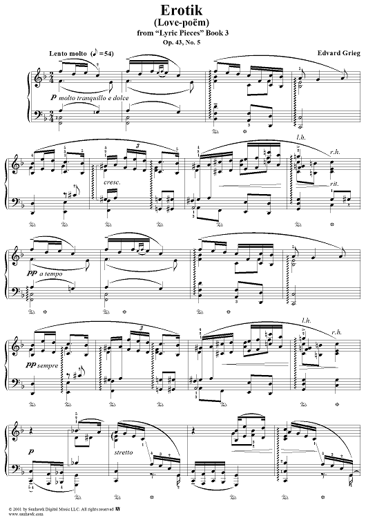 "Lyric Pieces Book 3, op. 43, no. 5: Erotik (Love Poem)" Sheet Music by Edvard Grieg